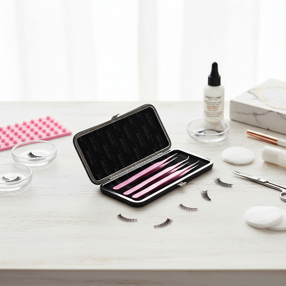 Pink Lash Tweezers with Custom Logo Tweezers Case Eyelash Extension