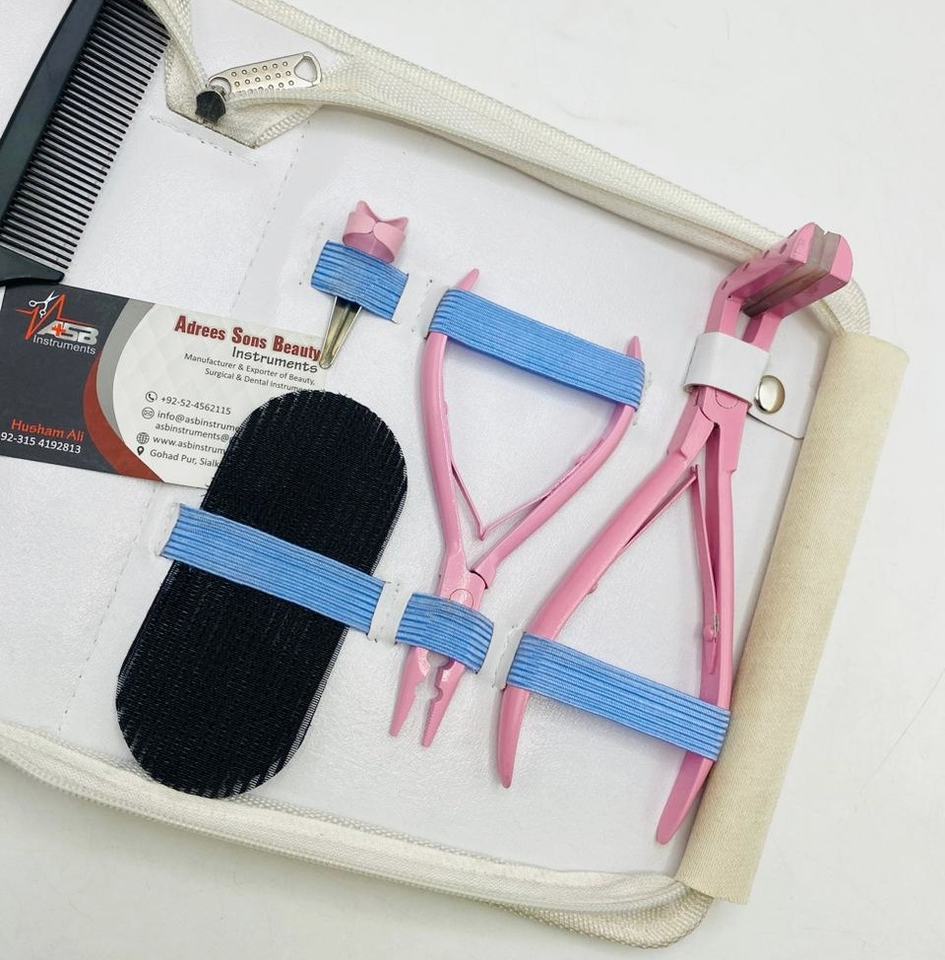 Pince à Extensions de Cheveux Multifonctionnelle en Acier Inoxydable, Pince à Ruban, Ciseaux, Étui Blanc, de Qualité Supérieure, Rose