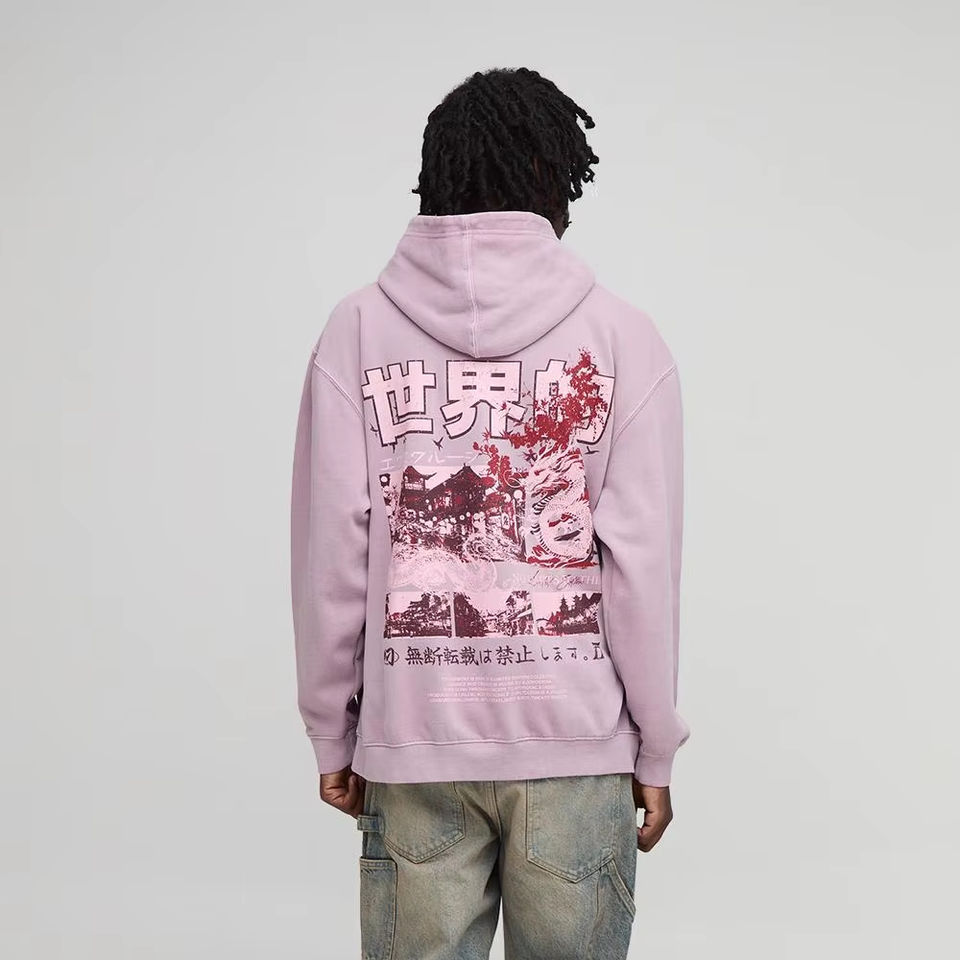 Pull Rose Acide Lavage À Capuche Sérigraphie Logo Dos Conception Sweat À Capuche Vintage Lavage À Capuche Coton