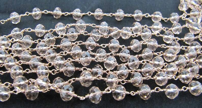 Perles à facettes Rondelle de Quartz rose de haute qualité 6mm chaîne de chapelet enveloppée de fil de pierres précieuses Hydro Aati pour la fabrication de bijoux