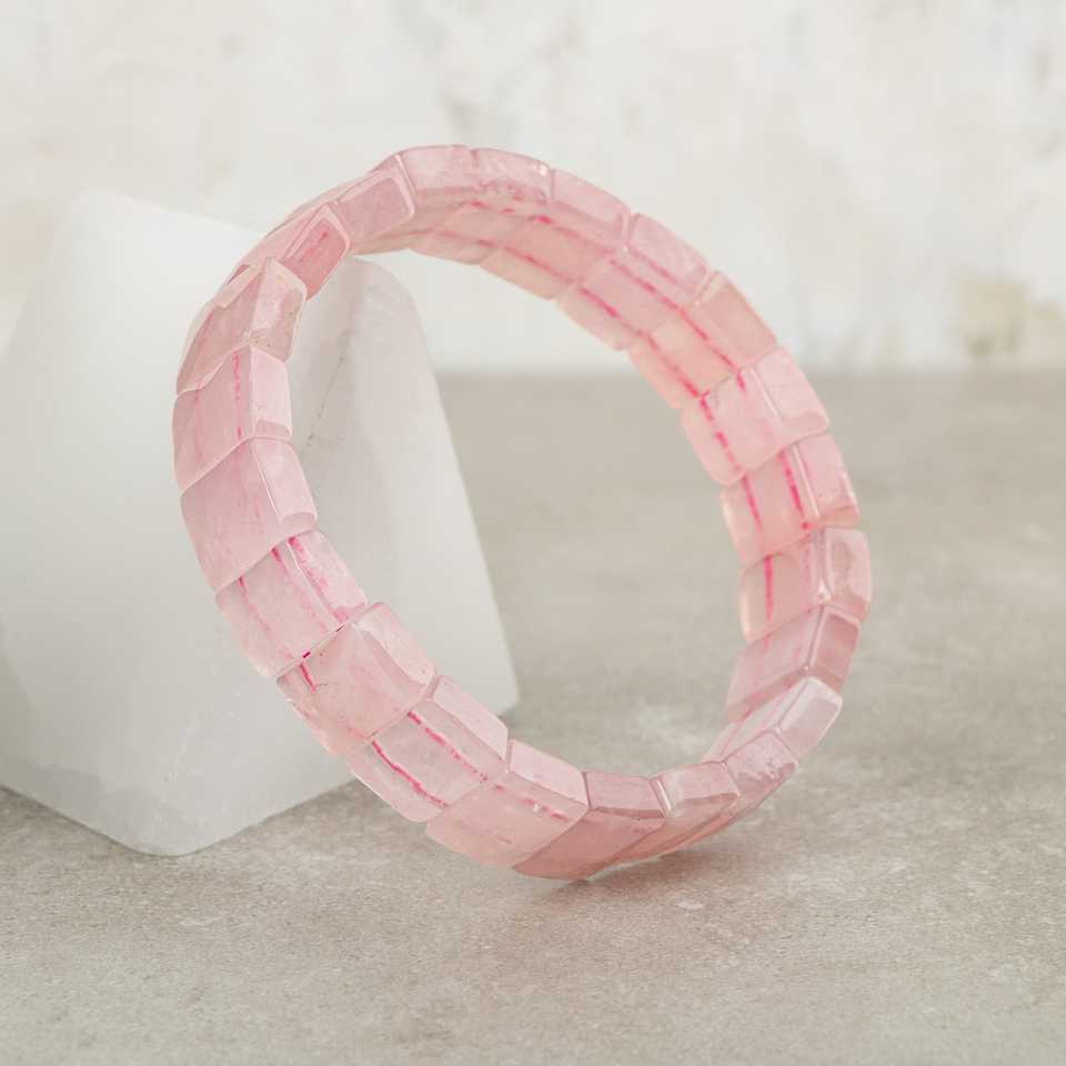 Bracelet en pierre naturelle de quartz rose (quartz rose) à coupe carrée large