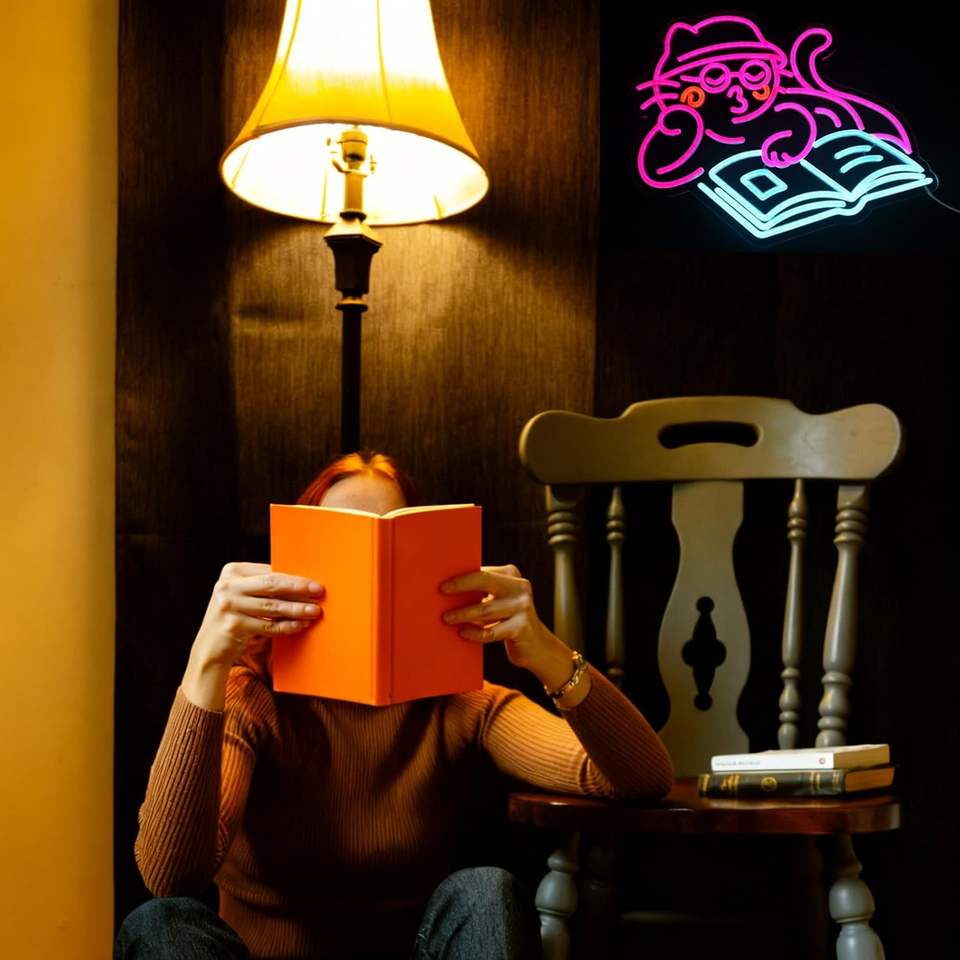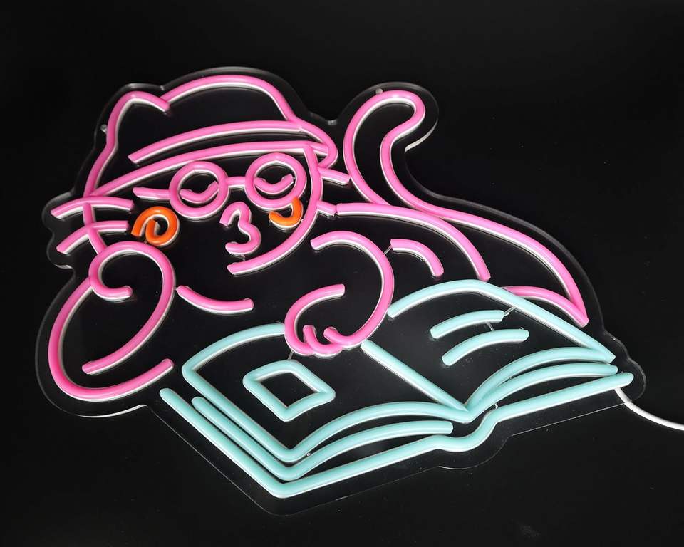 Enseigne néon rose « Chat lisant » pour la décoration de la salle de classe, du café, de la librairie, de la salle de lecture