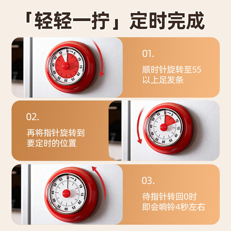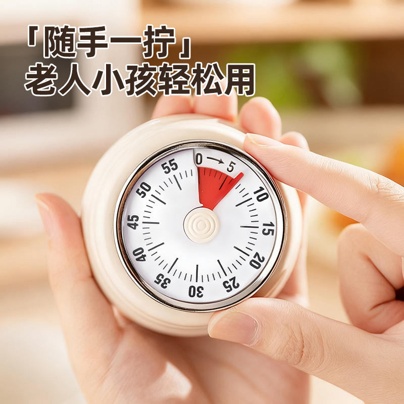 Minuteur mécanique de cuisine rond rose, compte à rebours de 60 minutes, commande tactile, fonctionnement facile pour la cuisson et la gestion du temps
