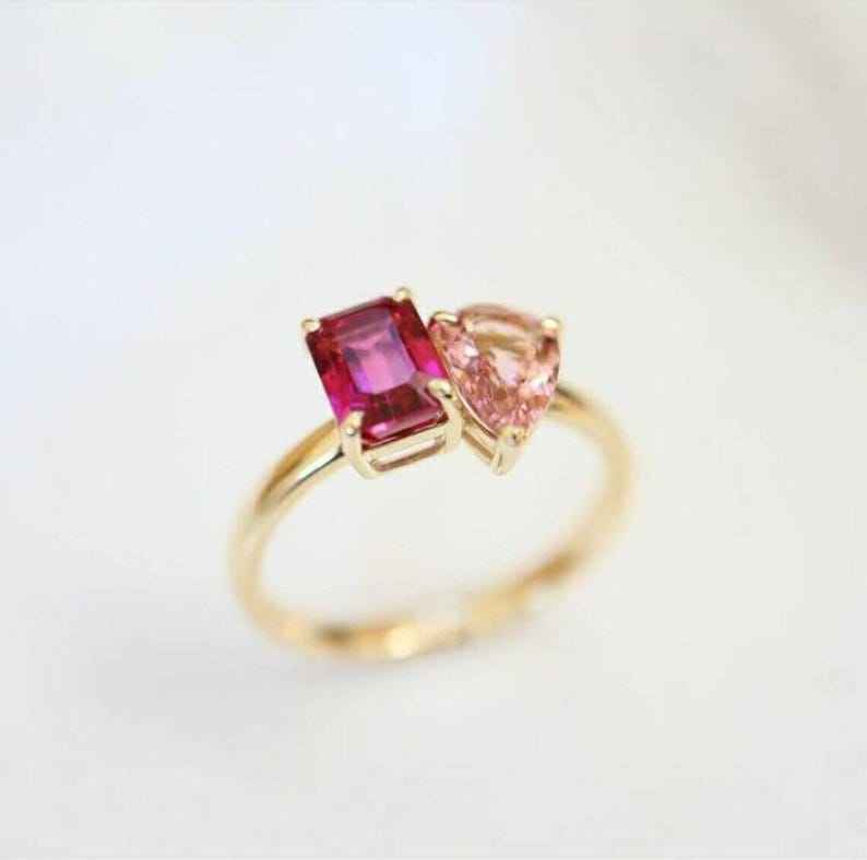 Mot-clé:Bague en argent 925 ornée d'un saphir rose et d'un rubis rose.
