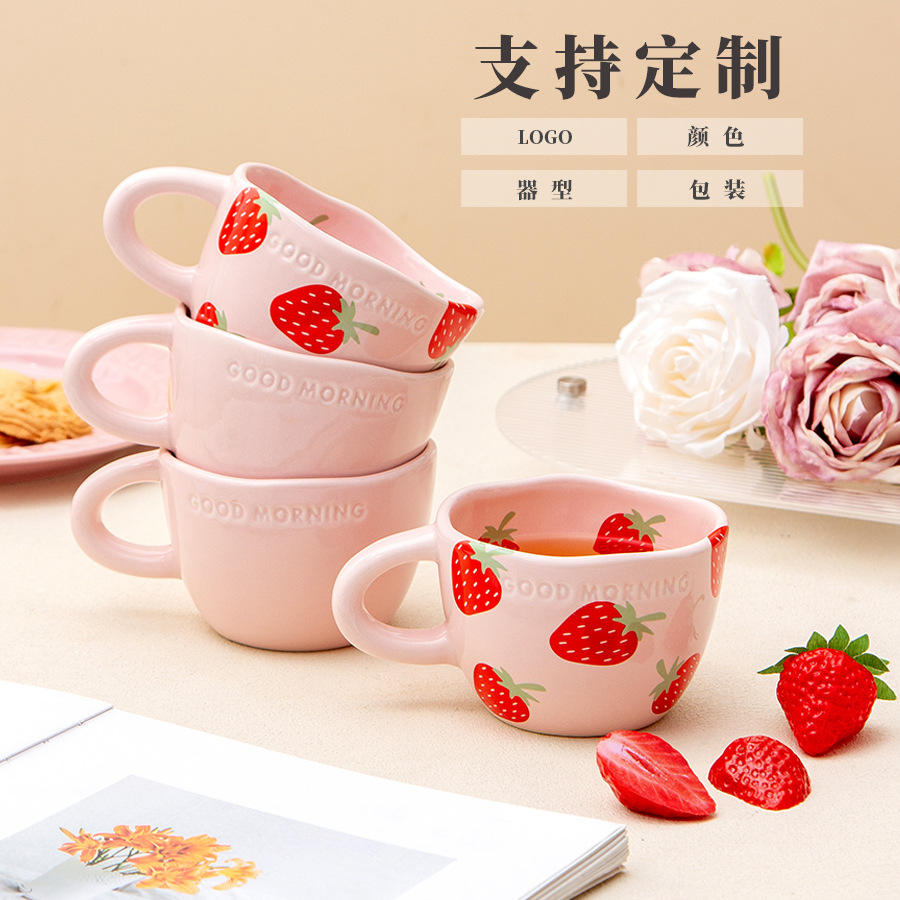 Mug en céramique rose fraise 245 ml avec poignée pour cadeau de couple, style nordique