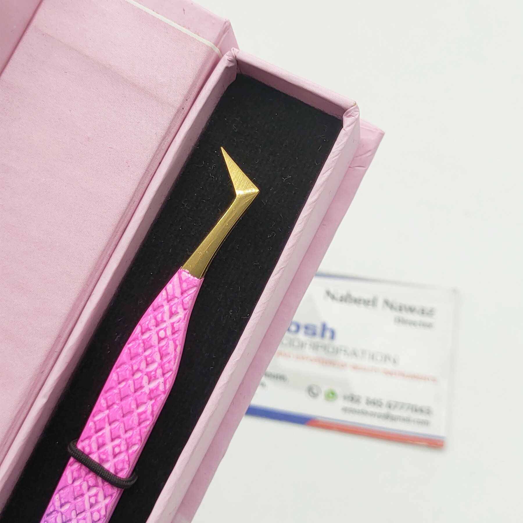 Pince à épiler d'extension de cils professionnelle en acier inoxydable à pointe rose avec logo personnalisé de haute qualité durable