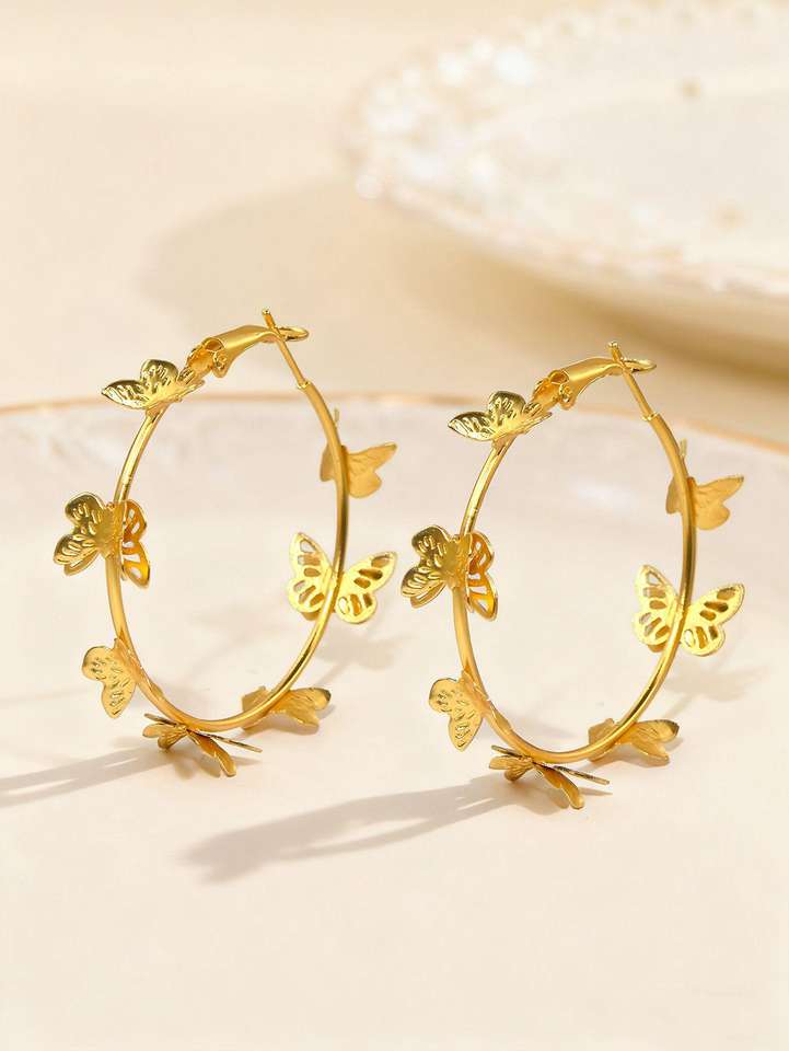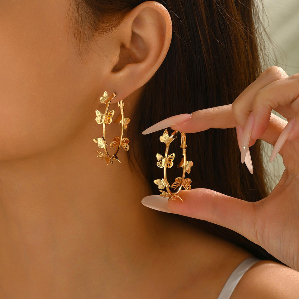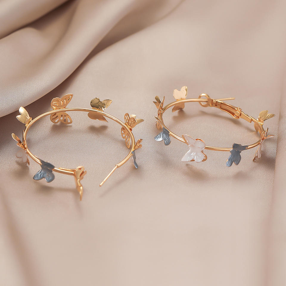 Boucles d'oreilles créoles papillon rose et blanc, grandes créoles géométriques dorées, nœud pour femme, bijoux de fête pour les vacances d'été, cadeau