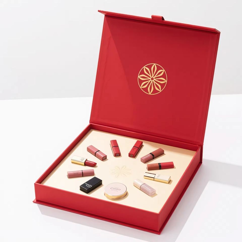 Boîte cadeau vide rose en matériaux recyclés pour rouge à lèvres, personnalisable, avec fermeture magnétique et impression de logo en relief