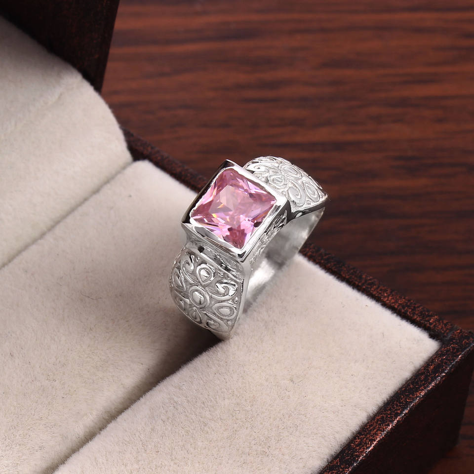 Bague longue pour femme en argent sterling 925 pierre de zircon rose et pierre précieuse taillée princesse bijoux de mode pour les occasions de mariage