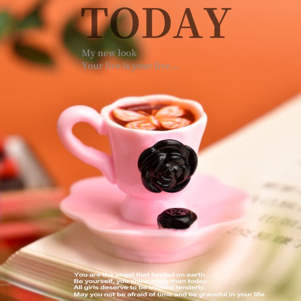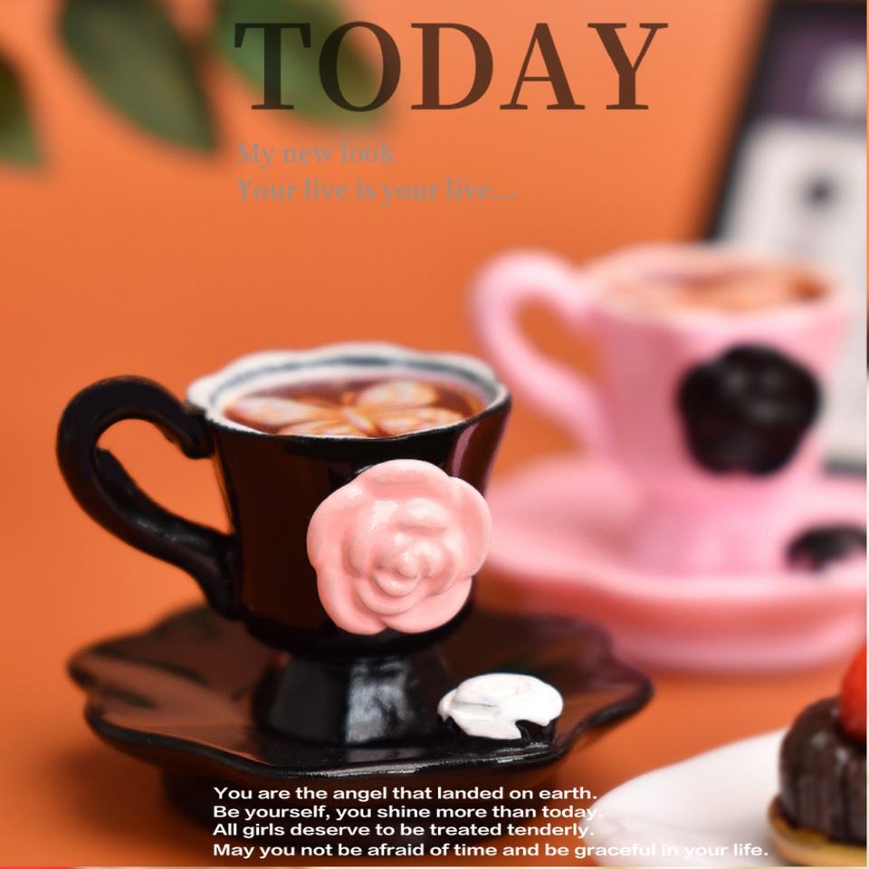 Breloques en résine en forme de tasses à café à fleurs roses et noires pour poupées, aliments miniatures, colle crème, décoration de coque de téléphone