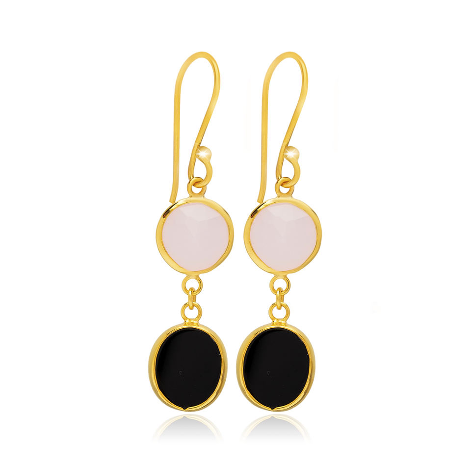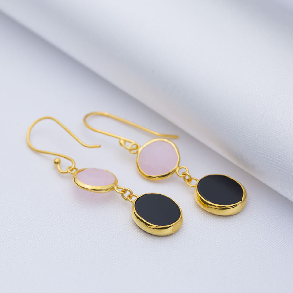 Quartz rose et noir or lunette crochet boucle d'oreille turc en gros 925 bijoux en argent Sterling