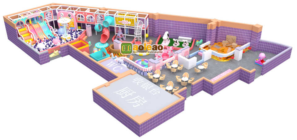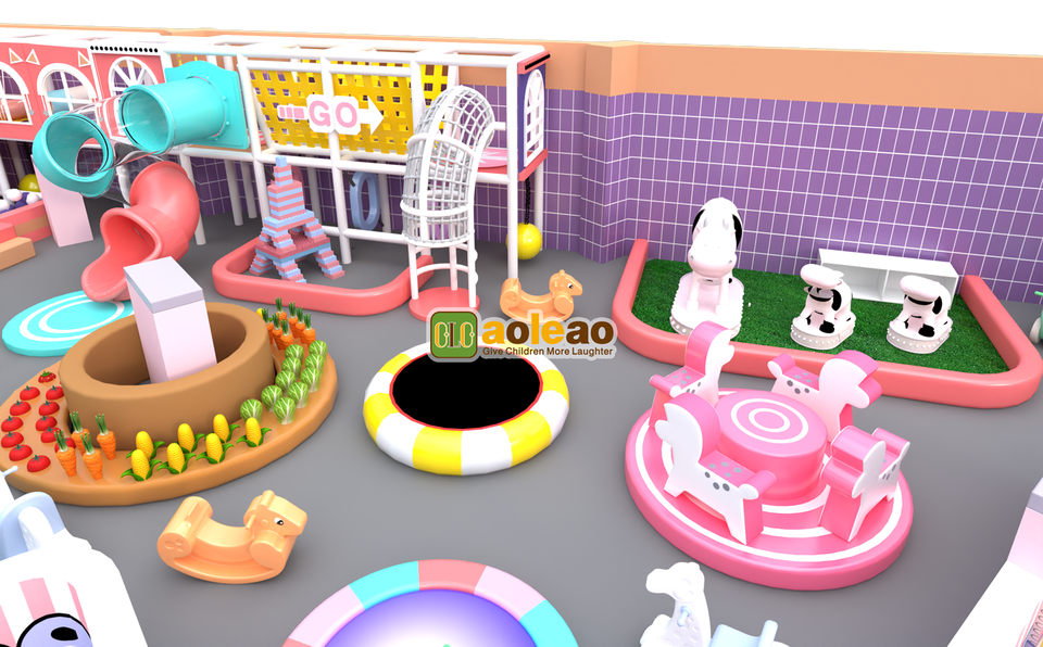 Caractéristique:Piscine à balles, Toboggans, Espace de loisirs créatifs, Trampoline, Ville simulée