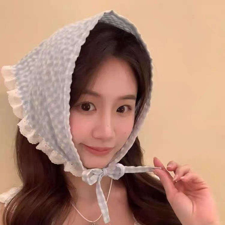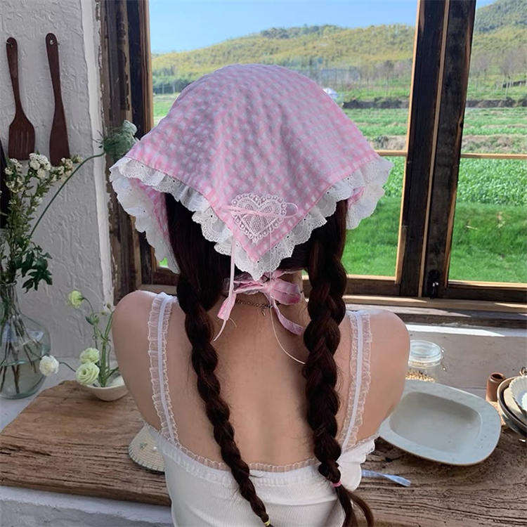Petit foulard carré brodé avec un motif de papillon rose, ambiance photo de voyage, foulard pour la tête