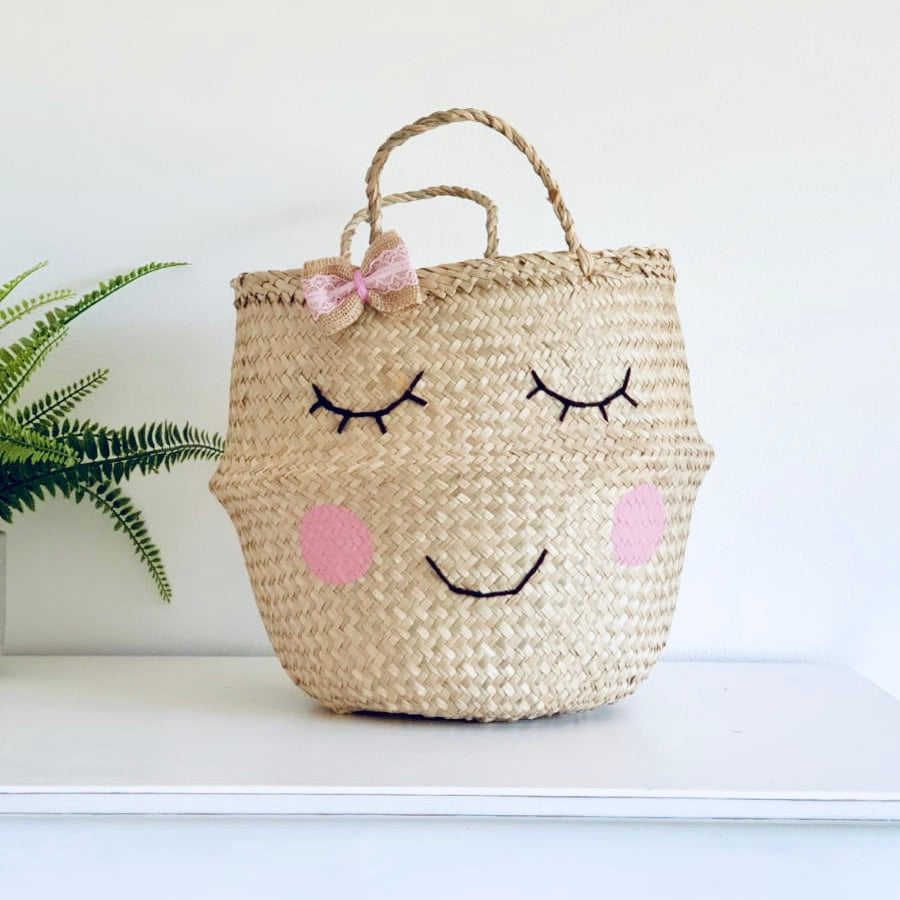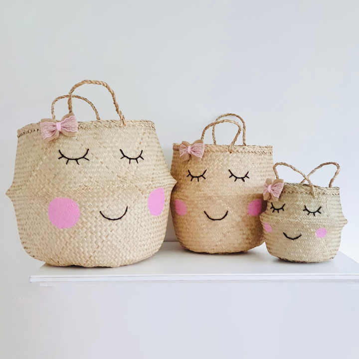 Pink seagrass basket hot sale natural sea grass belly baskets living room kitchen storage decor