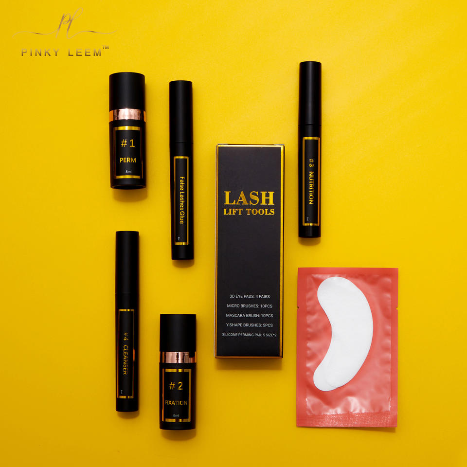Kit de rehaussement des cils Pinky Leem tout-en-un pour lotion permanente, fixateur, sérum nourrissant, outils essentiels, coussinets en silicone, peigne, colle