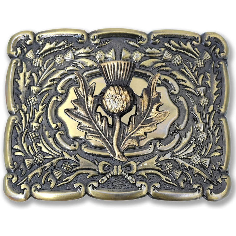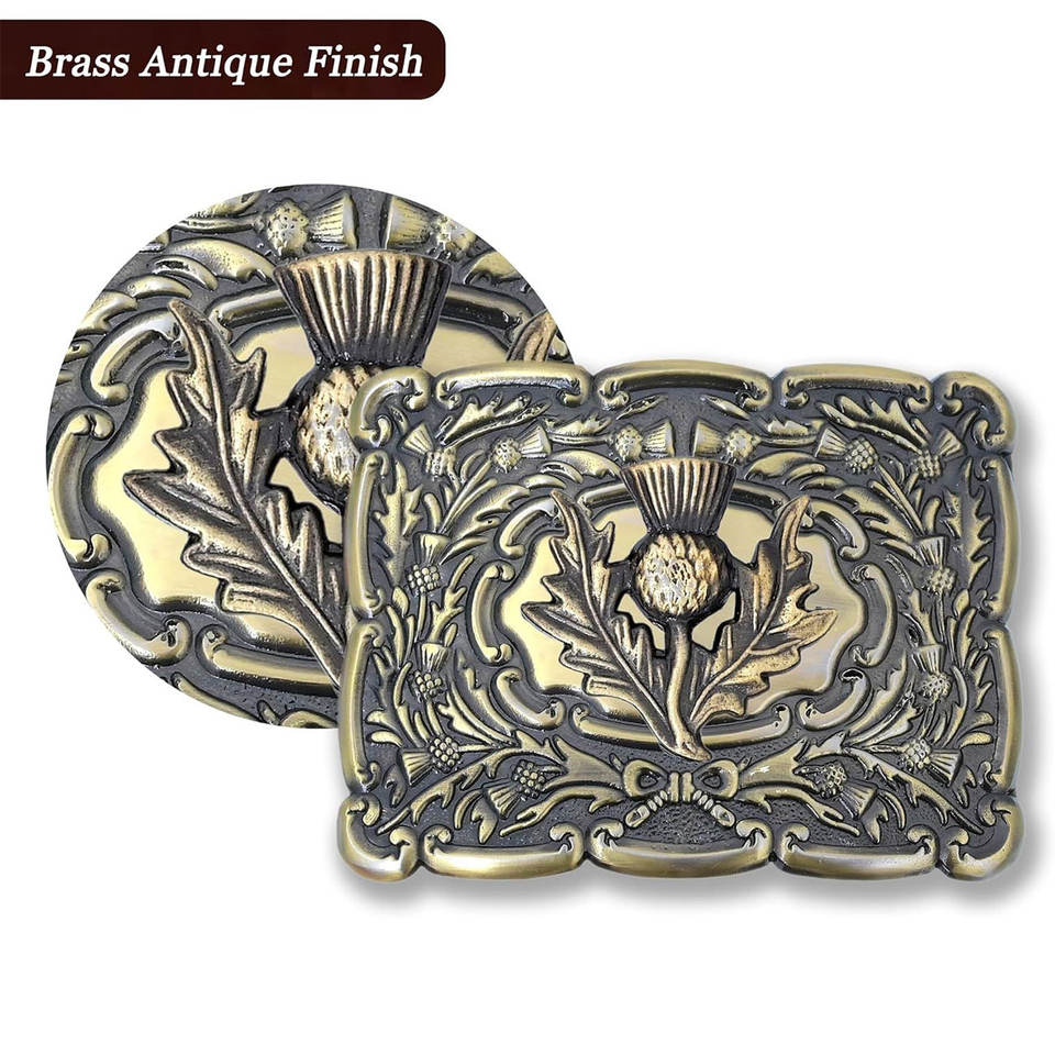 Boucle de ceinture pour kilt - Laiton inoxydable avec motif gazon-ichon emblématique - Accessoires traditionnels écossais pour tartan des Highlands