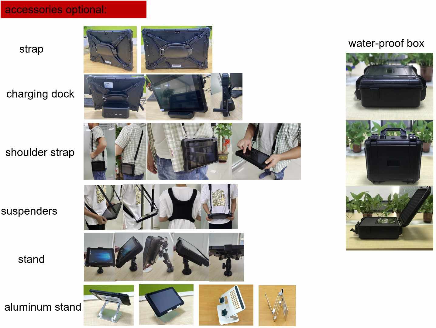 GPS, reconnaissance d'empreintes digitales, scanner de code, wifi, prise d'alimentation et sangle