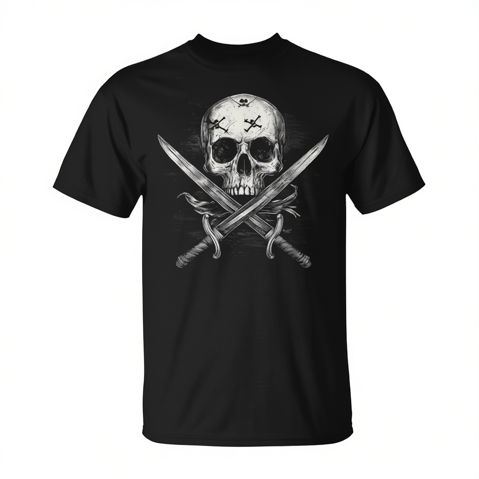T-shirt Pirate Sword Skull And Crossbones, Costume d'Halloween, noir, taille moyenne pour hommes
