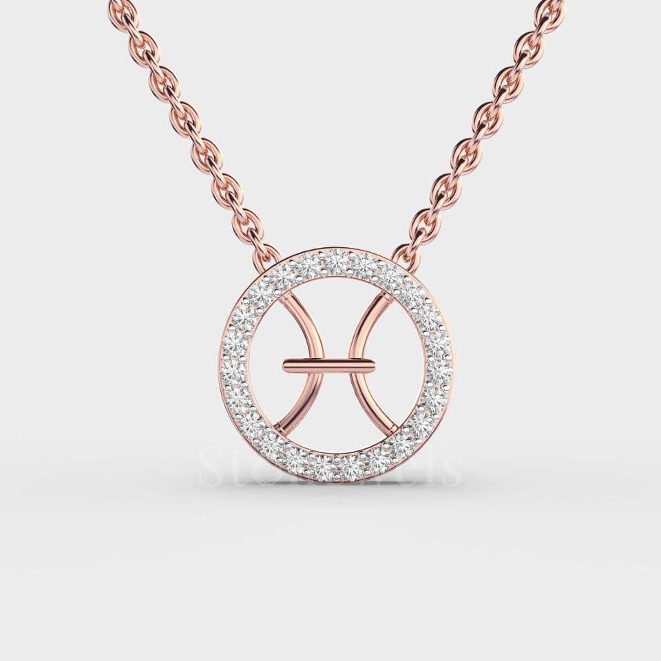 Model Number:Pisces Zodiac Diamond Necklace-Rose Gold