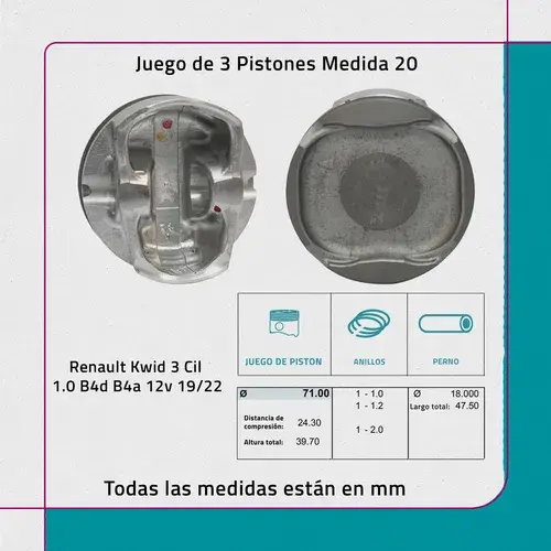Jeu de pistons 20 Renault Kwid 3 cyl. 1.0 B4d B4a 12v 19/22