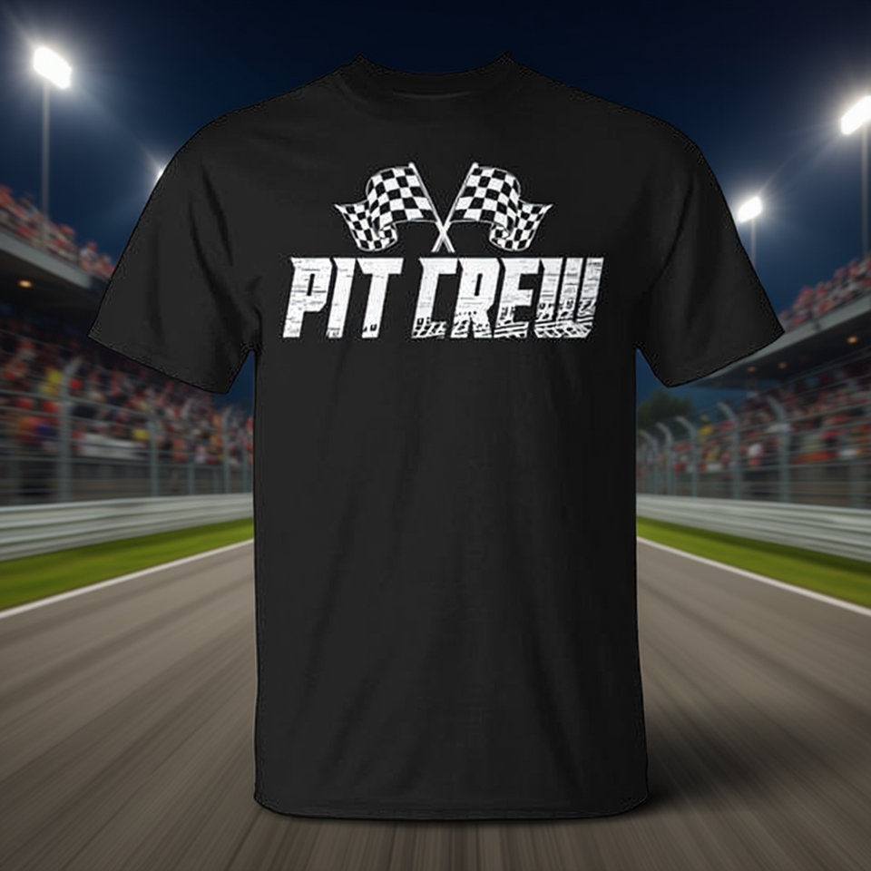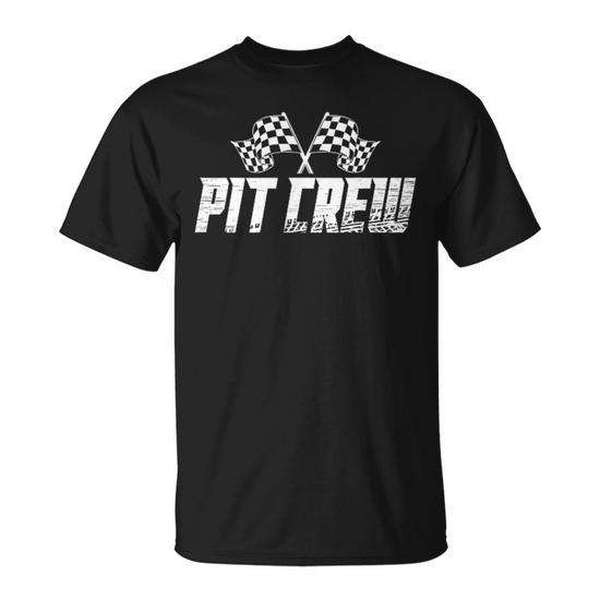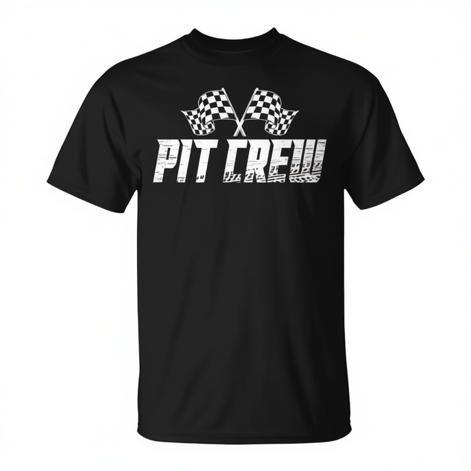 T-shirt Pit Crew Racing pour adultes, unisexe, design de drapeaux à carreaux noirs