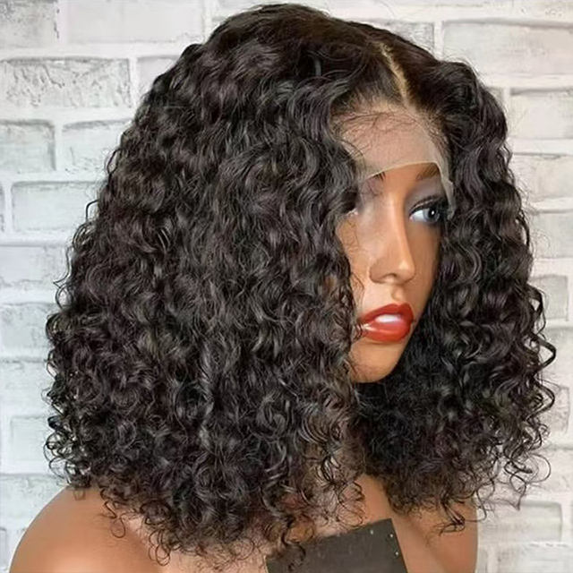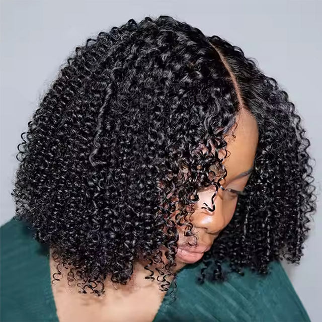 Perruque Pixie Bouclée Sans Colle Fermeture 5x5 HD Transparente Lace Front Péruvienne Afro Crépu Bouclé Courts Cheveux Humains Bob pour Femmes