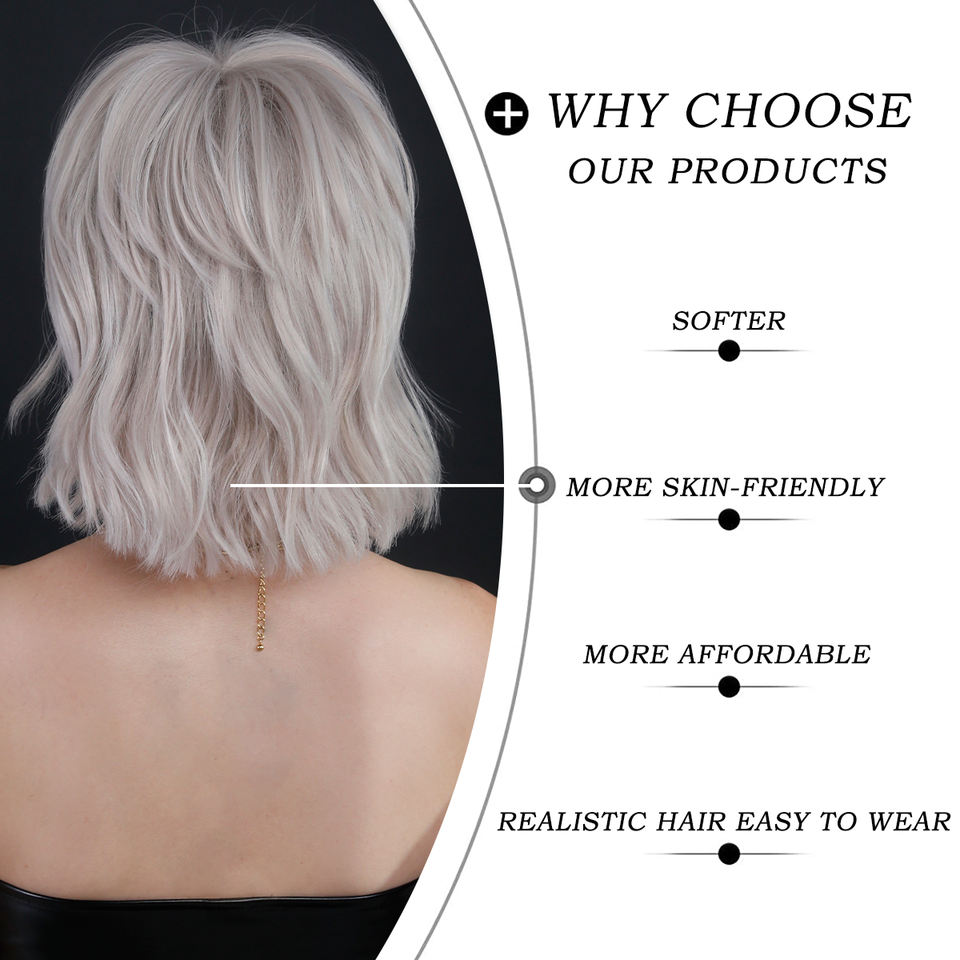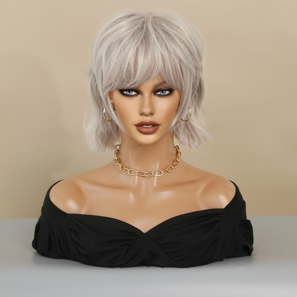 Perruques Pixie Cut avec frange Ombre platine rose clair, perruques mignonnes Bob courtes couches cheveux ondulés 12 pouces perruque pour femmes en gros