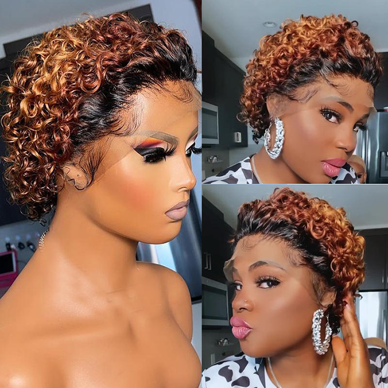 Perruque Pixie Cut, cheveux humains bouclés, coupe Pixie courte, nœuds blanchis, dentelle frontale, 13x4, perruque Pixie avec cheveux de bébé