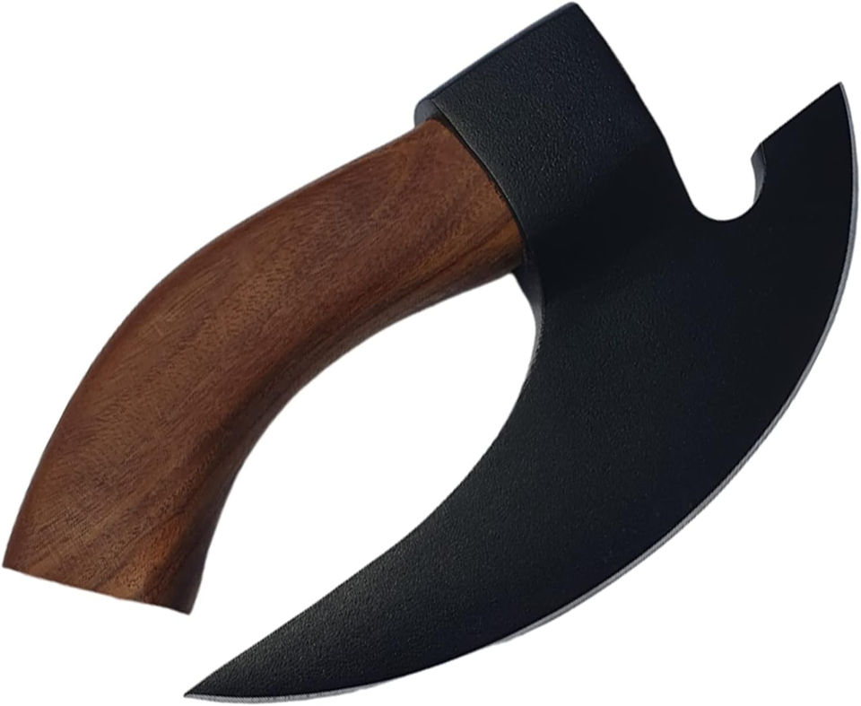 Couteau à pizza en forme d'axe avec manche en bois – Outil de cuisine de qualité supérieure – Lame de style axe pour couper la pizza – Outil de découpe de cuisine au design axe pour pizza