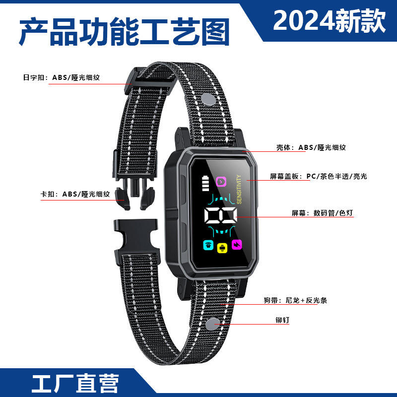 Collier de contrôle des aboiements intelligent à écran couleur Pl30 pour chien, entraînement par vibration, multifonction, plastique noir, modèle Pl30