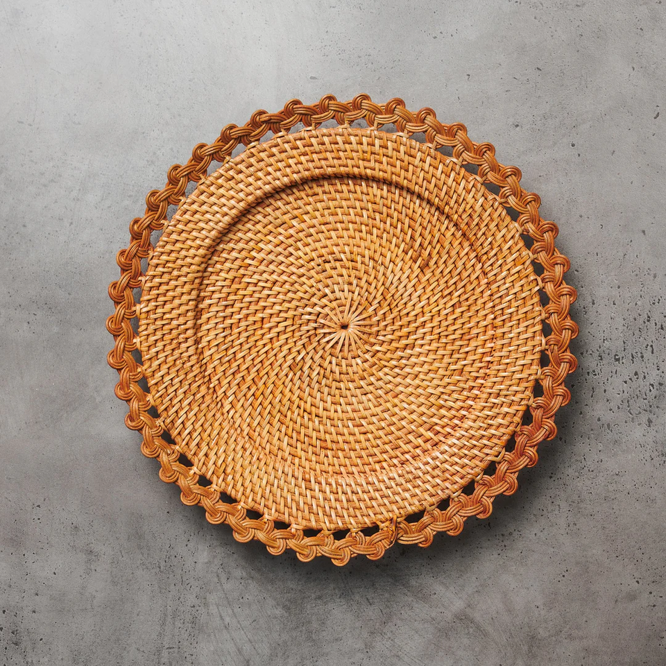Bord de pétoncles en rotin Placemat:Taille: D13,8 pouces