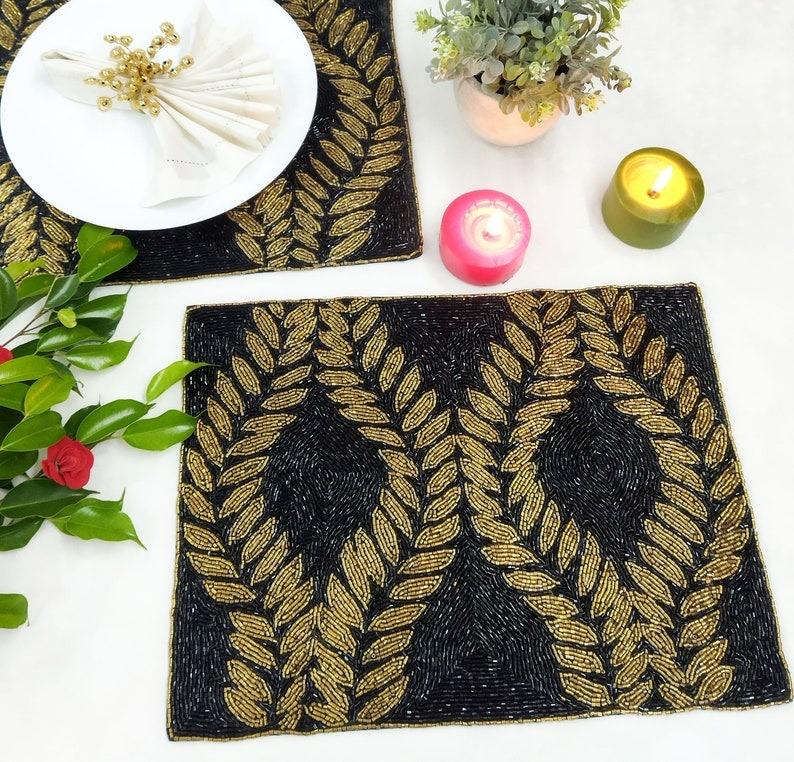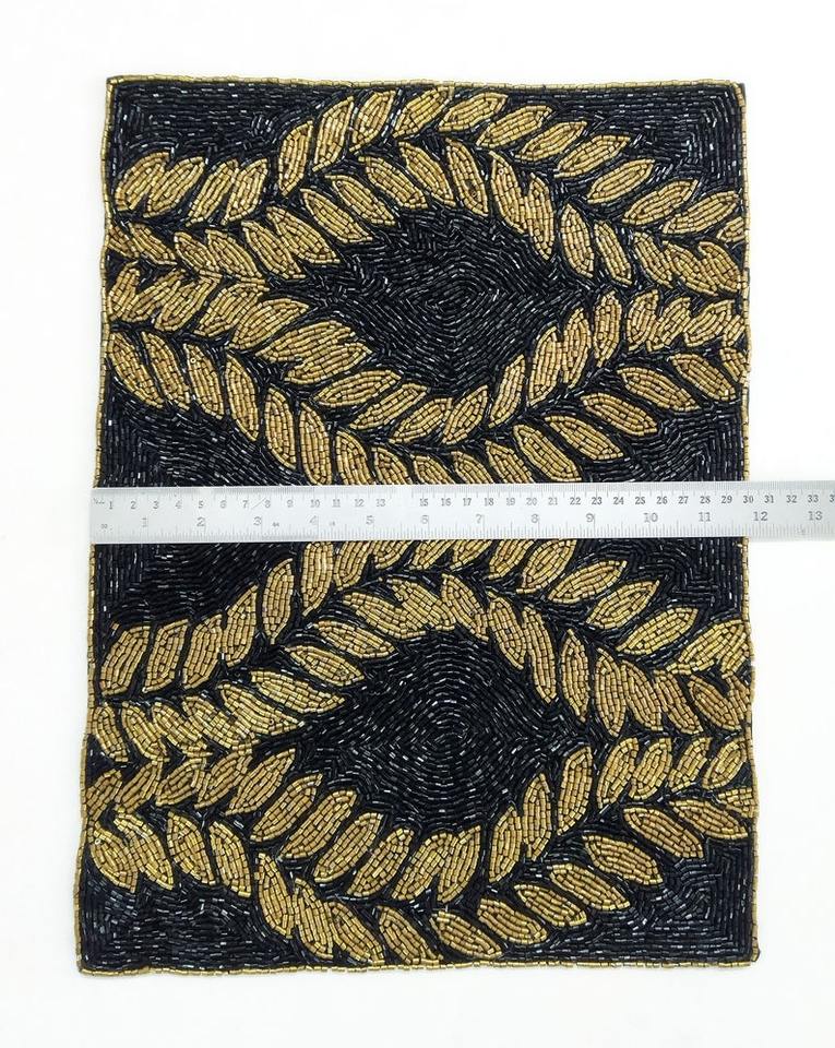 Luxury Handcrafted Seed Bead Embroidery Placemat Eco-Friendly Wedding Home Decor India Handmade Customizable