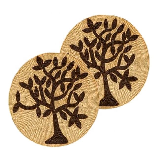 Sets de table de forme ronde, Design fantaisie, broderie noire et blanche, Look Antique, vaisselle faite à la main, napperons décoratifs