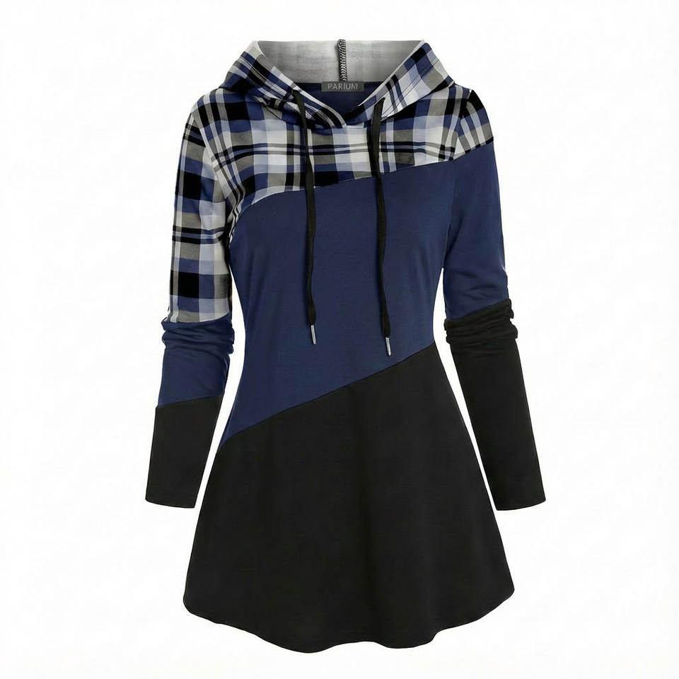 Sweat-shirt à capuche pour femmes en patchwork à carreaux, couleurs et tailles personnalisées, manches longues, coupe ajustée, décontracté, prix de gros, tuniques à capuche