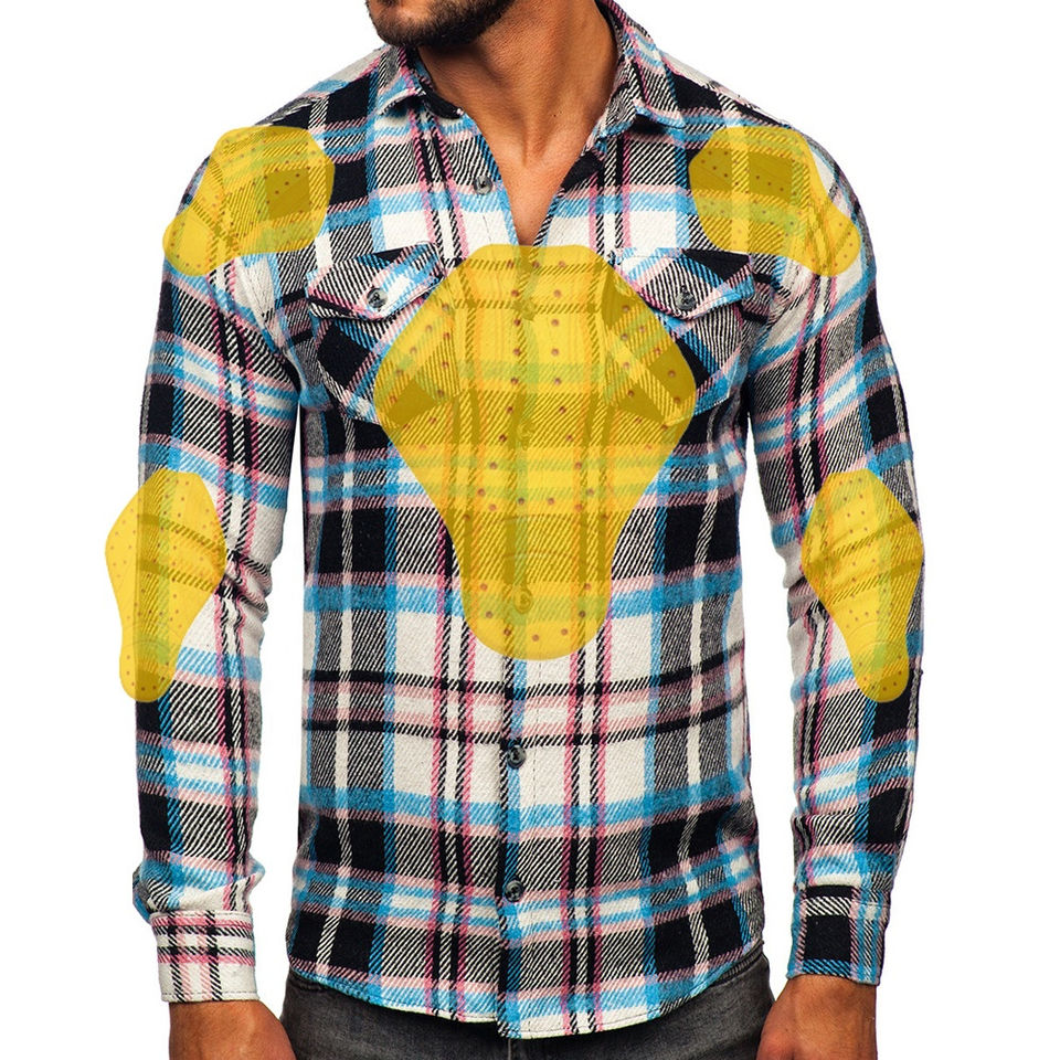 Plaid flannel shirt for mens with CE Level 2 armored motorcycle shirt protection and armored shirt for motorcyclists
