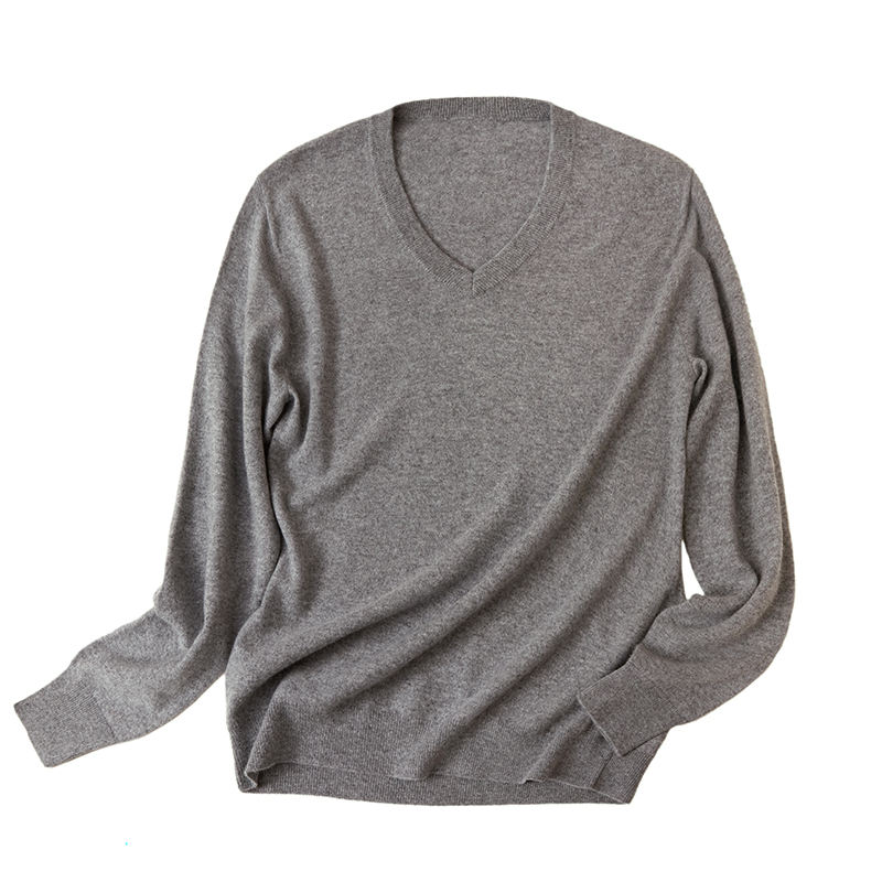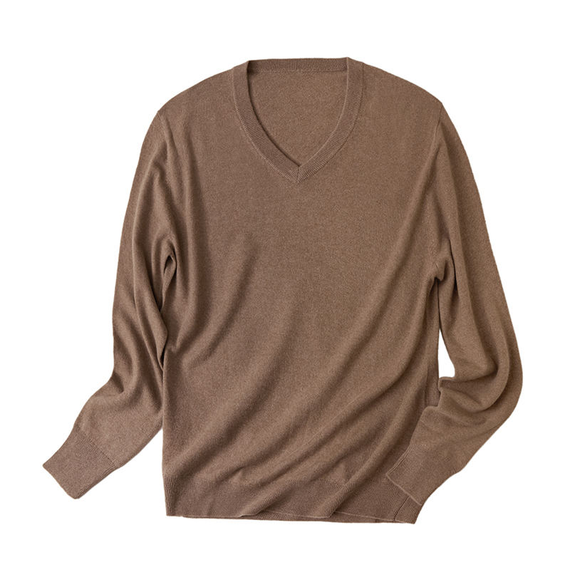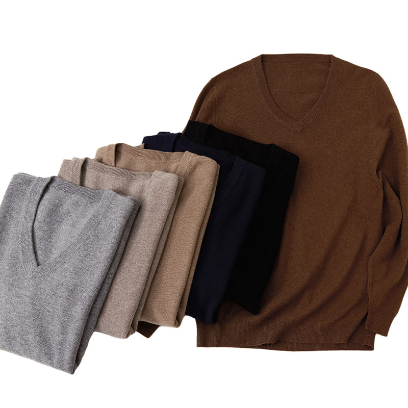 Pulls en tricot uni à manches longues pour hommes, col en V personnalisé, pull en cachemire pur