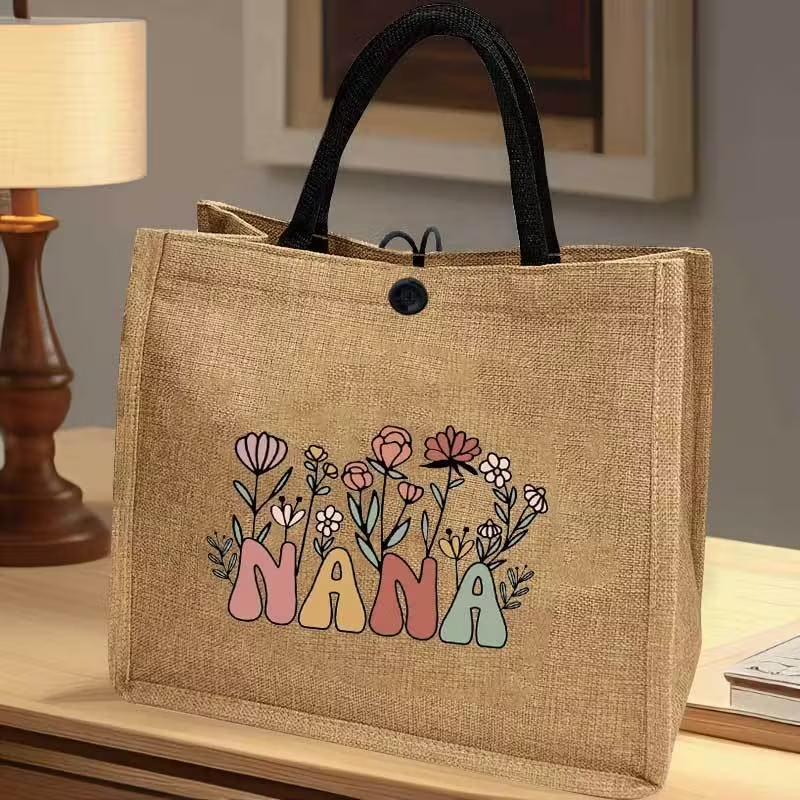 Sac à provisions de plage multifonction durable et uni sac fourre-tout en jute d'épicerie avec logo imprimé coloré