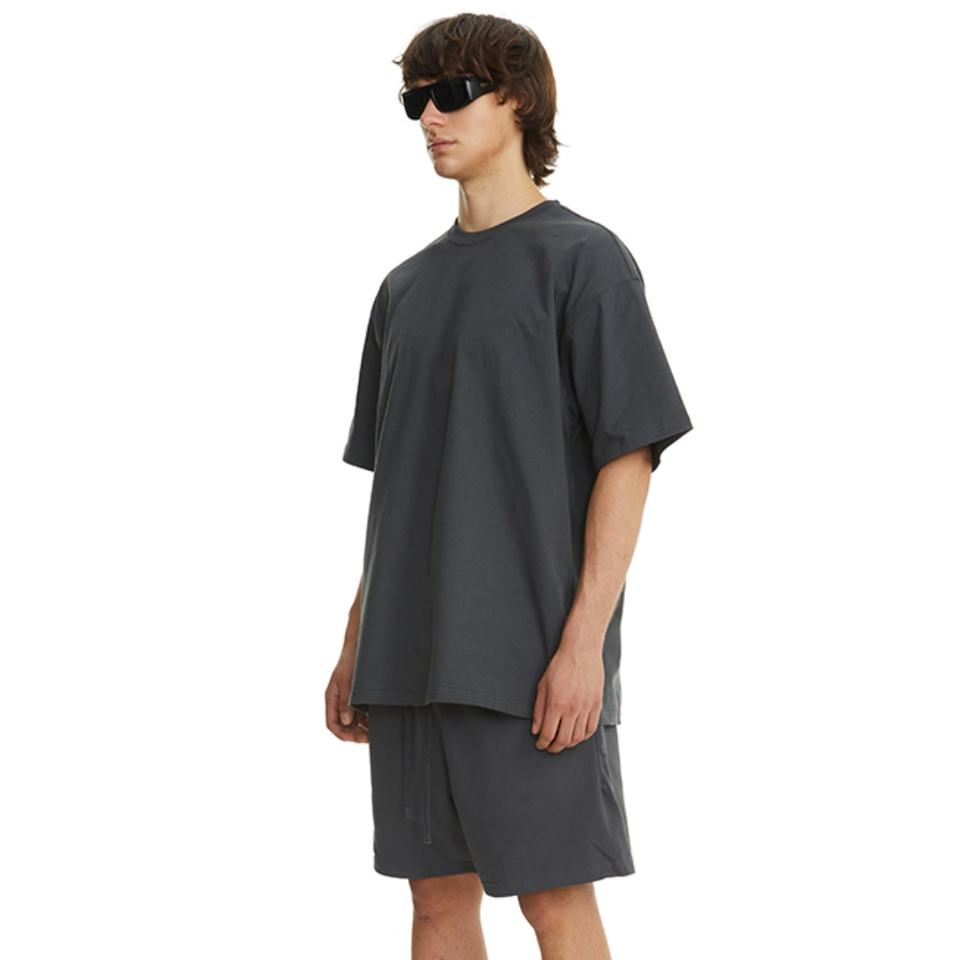 T-shirt uni épais à col ras du cou, coupe oversize, impression personnalisée, épaules tombantes, respirant, en coton 220 GSM, pour hommes
