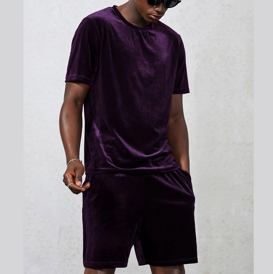 Ensemble de survêtement uni de couleur marron pour les activités de plein air estivales, fitness, velours, velours côtelé, t-shirts courts avec personnalisation respirante