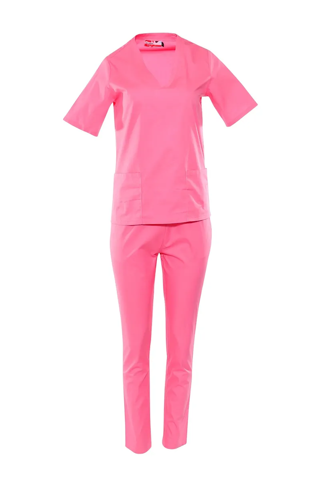 Haut à manches courtes à col en V de couleur rose unie et pantalon confortable, uniforme de personnel hospitalier, uniforme médical