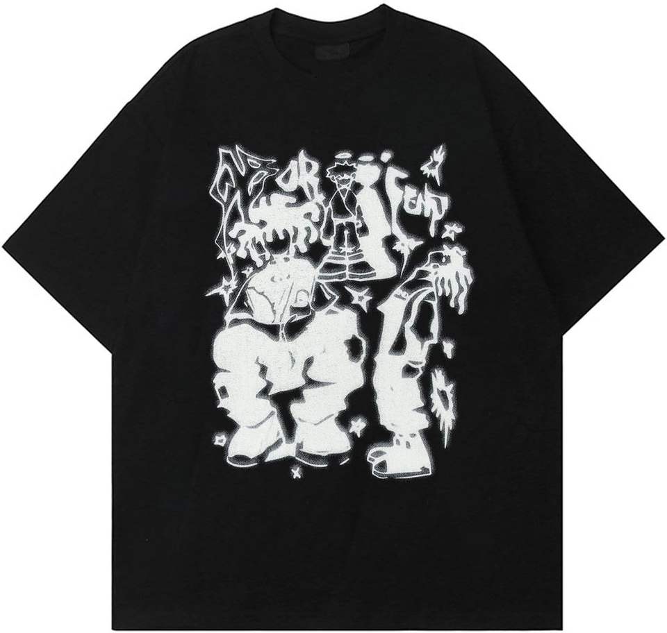 T-shirts unis surdimensionnés créatifs Graffiti chemises à manches courtes été décontracté rappeur Streetwear Y2k hauts T-Shirt pour hommes