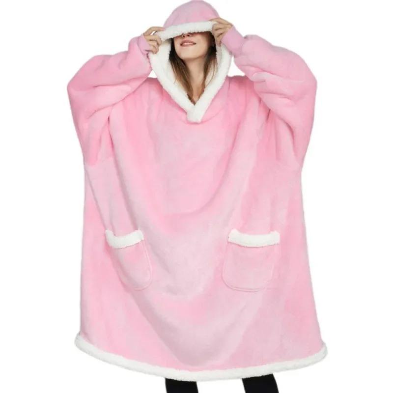 Plain Thick Sherpa Fleece Cozy Warm Oversized Streetwear Long Winter Hoody Blanket with Hoods Customizable