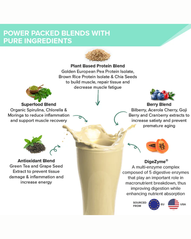 Pea protein, brown rice protein, natural banana
