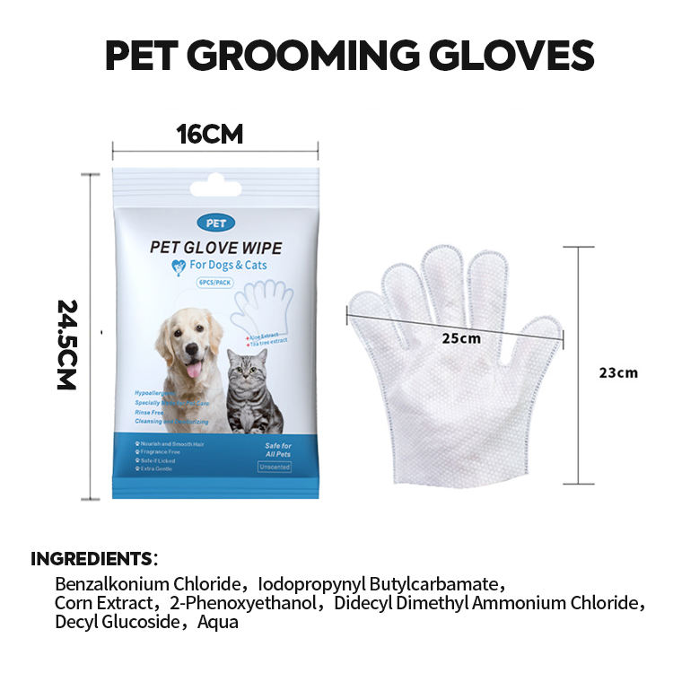 Extrait de plante amical chatte chien bain nettoyage à sec biologique Non tissé gant pour animaux de compagnie lingettes