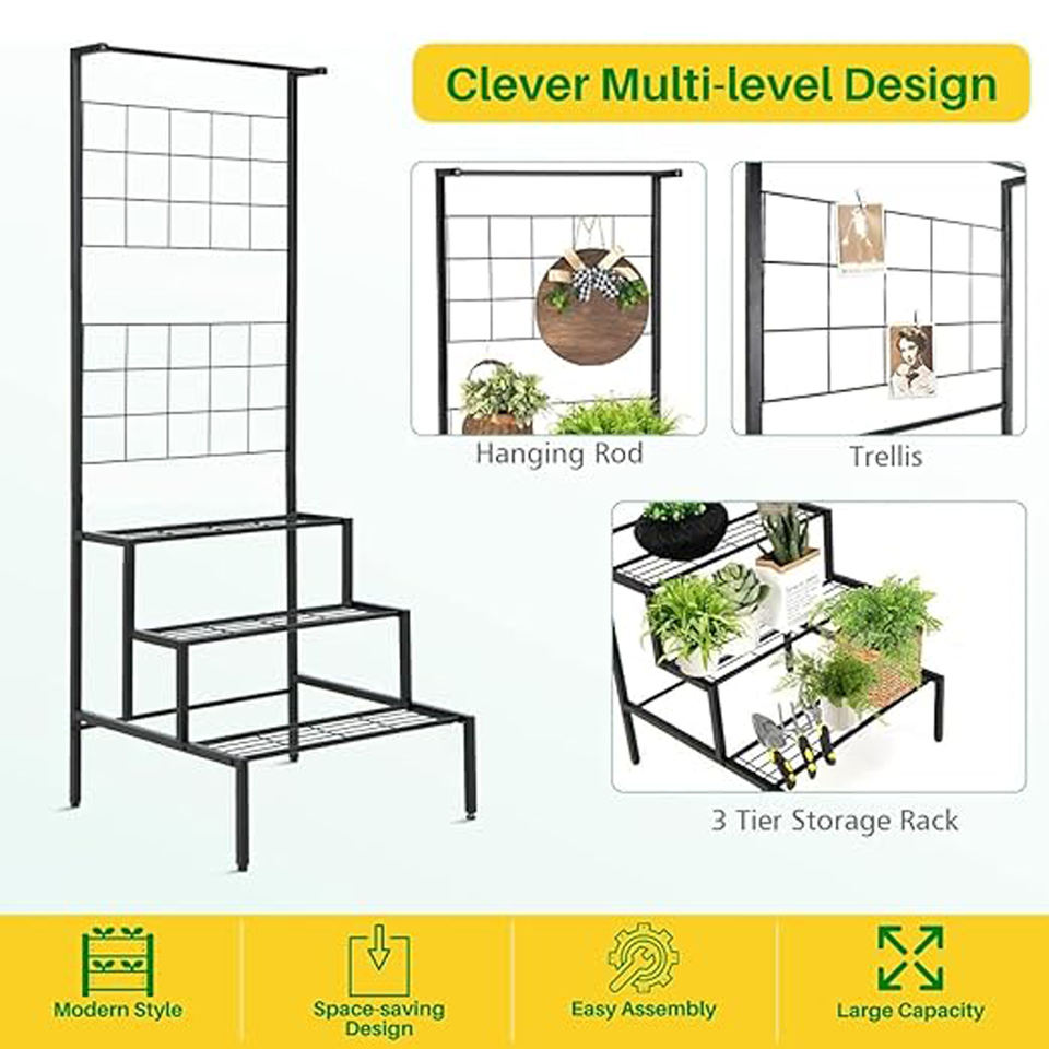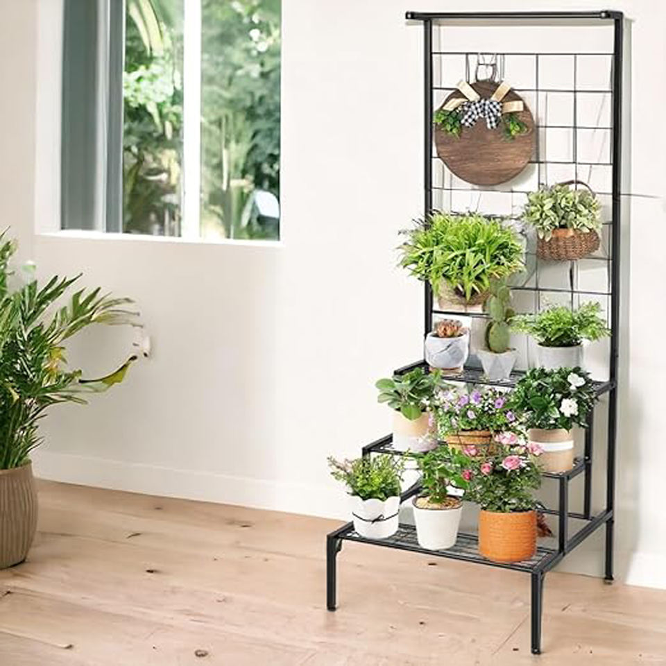 Plant Stands for Outdoor Balcony, Flower Pot Stand for Indoor Plants, Home decor, Indoor & Outdoor plants, 4 Tier, (Black)