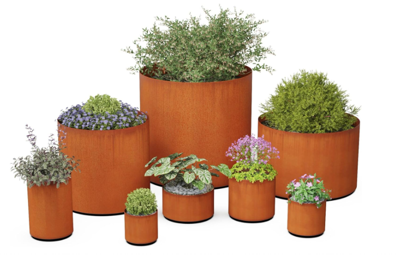 Jardinière ronde en acier, grande jardinière en acier corten, pots à fleurs en acier corten