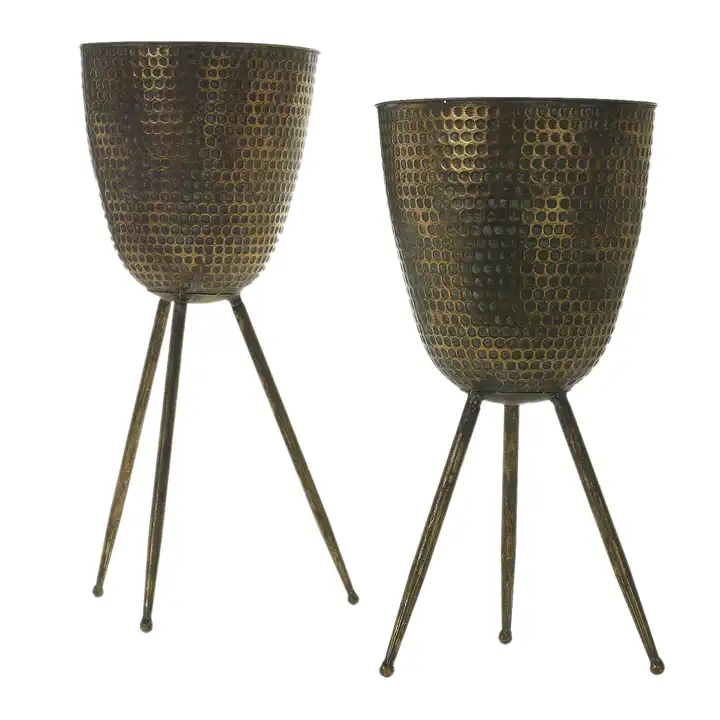 Jardinières et pots de fleurs pour décor de maison Ensemble de vaisselle à fleurs/2 jardinière au design martelé avec 3 pieds Idéal pour décor de plantes vertes