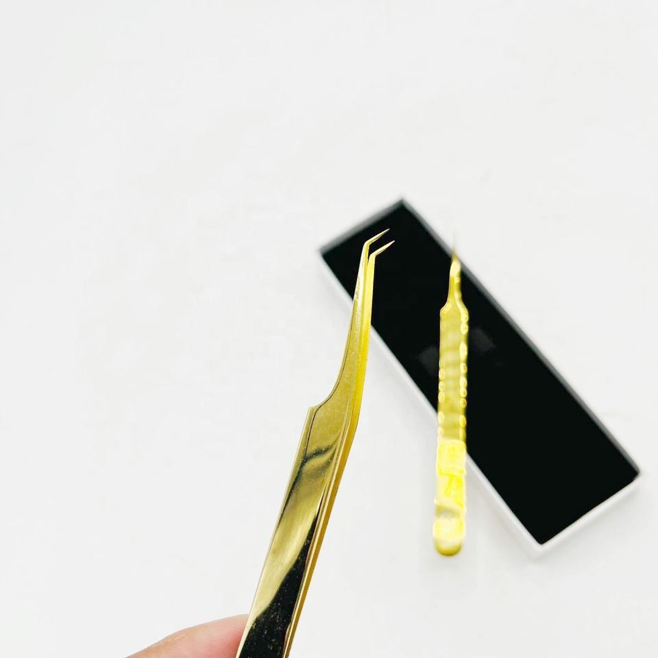Pince à cils plaquée or plasma, droite à 45 degrés, antibactérienne et pointue, poids léger en acier inoxydable, logo de couleur personnalisé