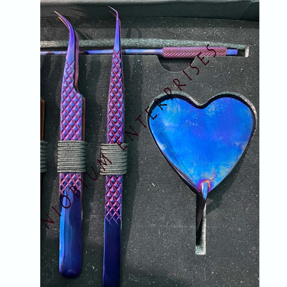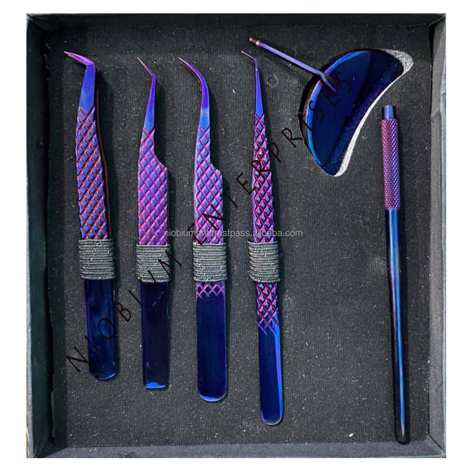 Ensemble de pinces à cils en acier inoxydable et miroir à cils Plasma violet avec logo personnalisé et couleur