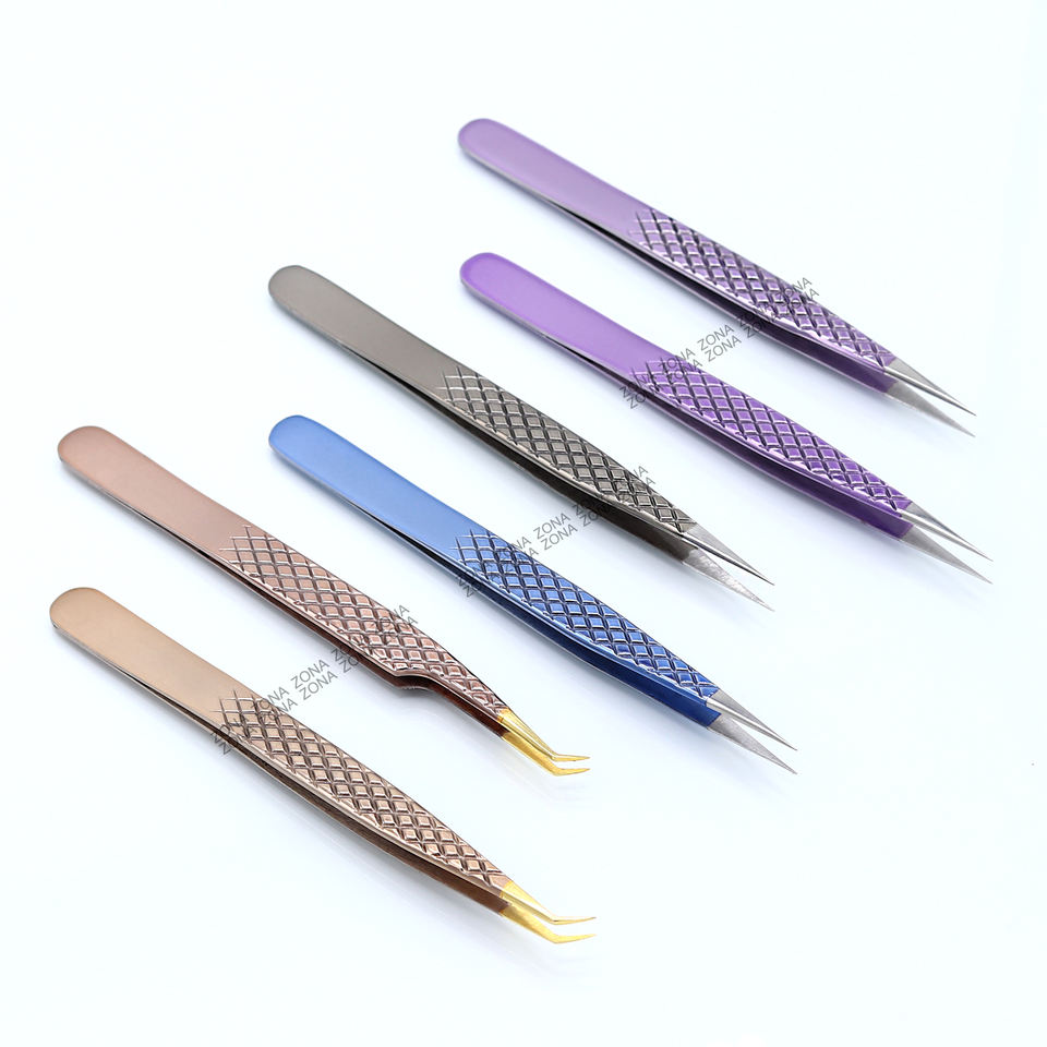 Pince à cils incurvée à pointe fine et teinte plasma Pince à cils professionnelle Pince à cils avec logo personnalisé